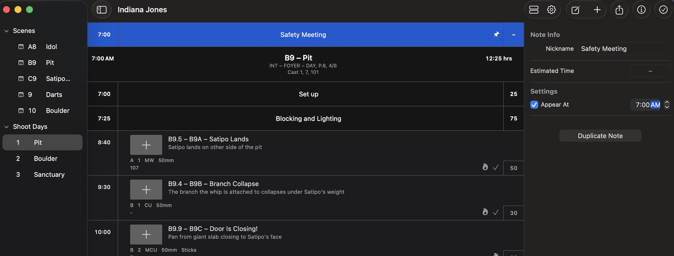 You can now place Notes anywhere within your Shoot Day Schedule. To move a Note before the very first scene header you need to pin it and set the time at the start of your day ?